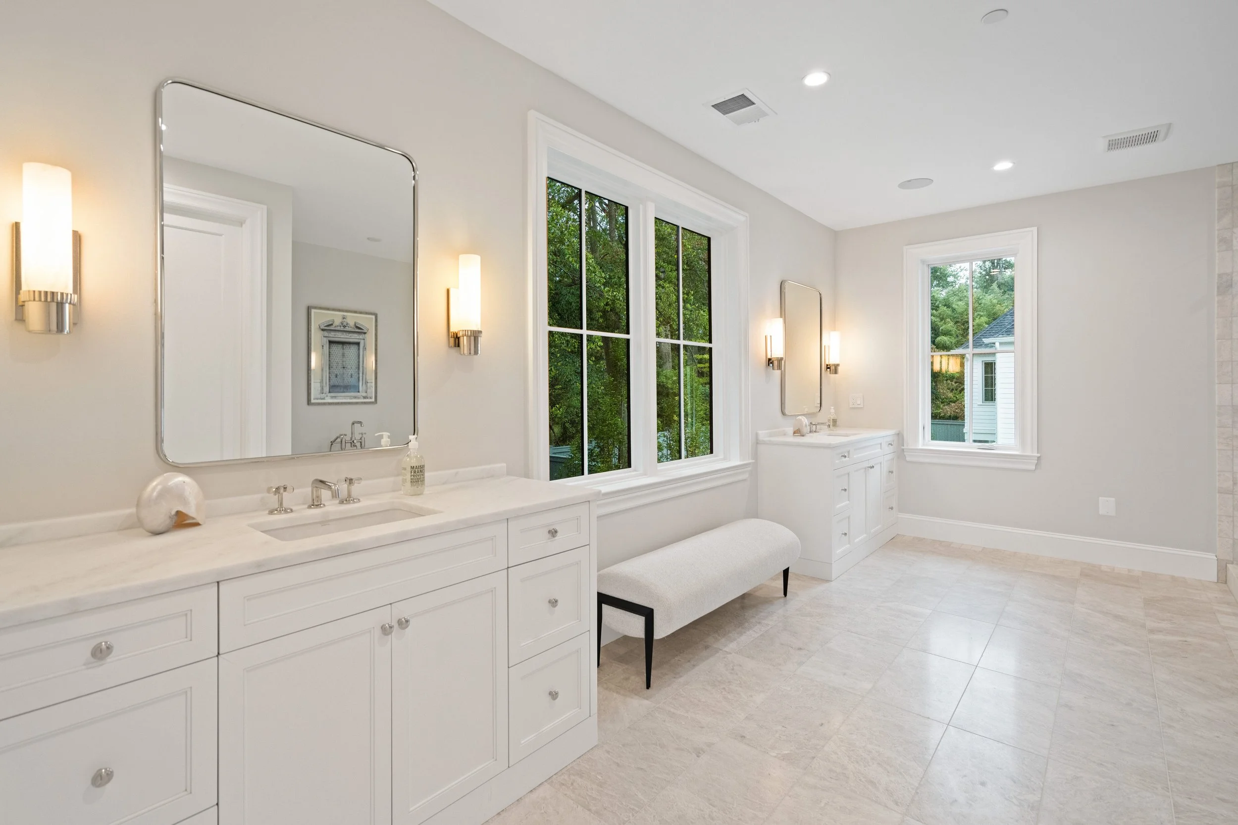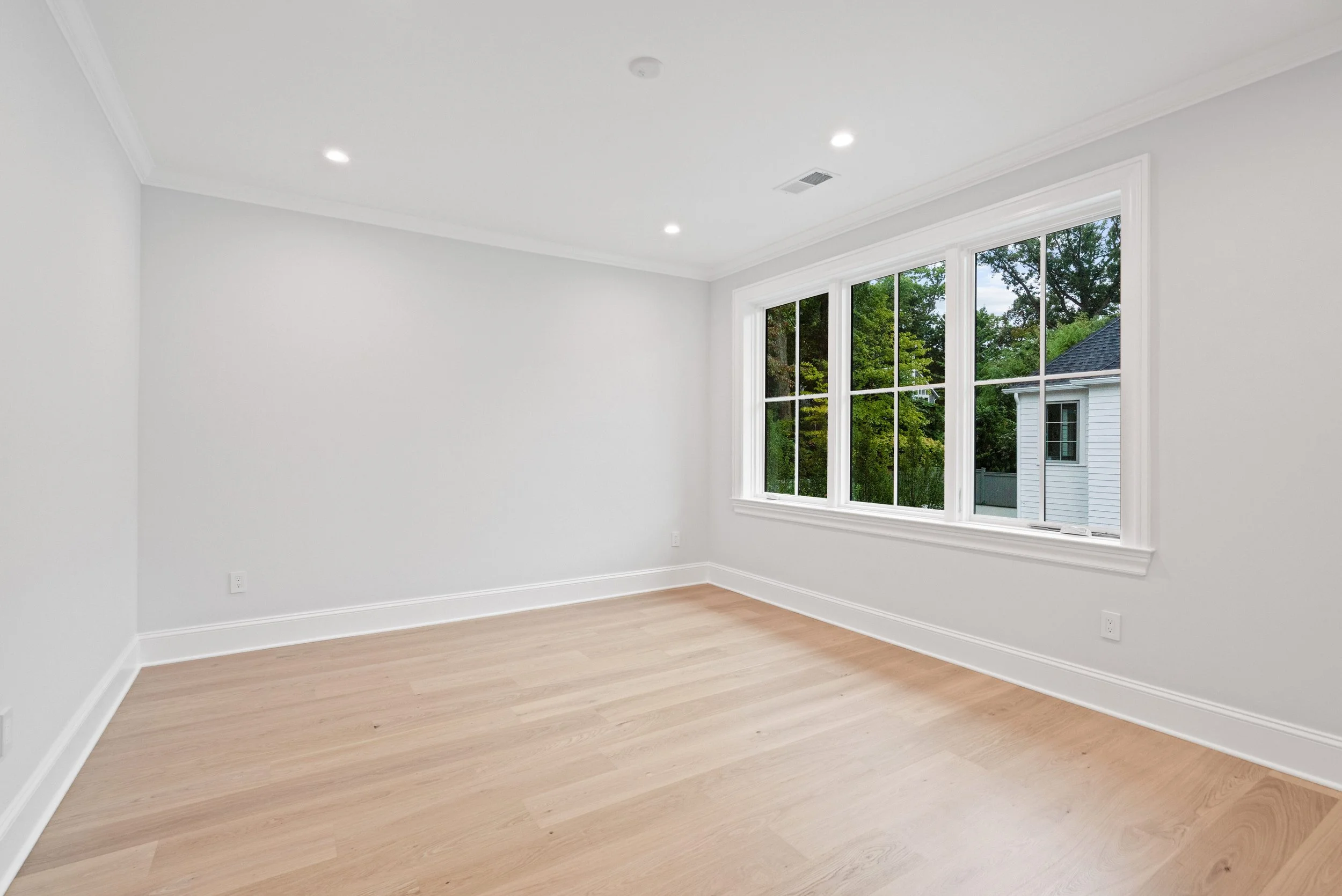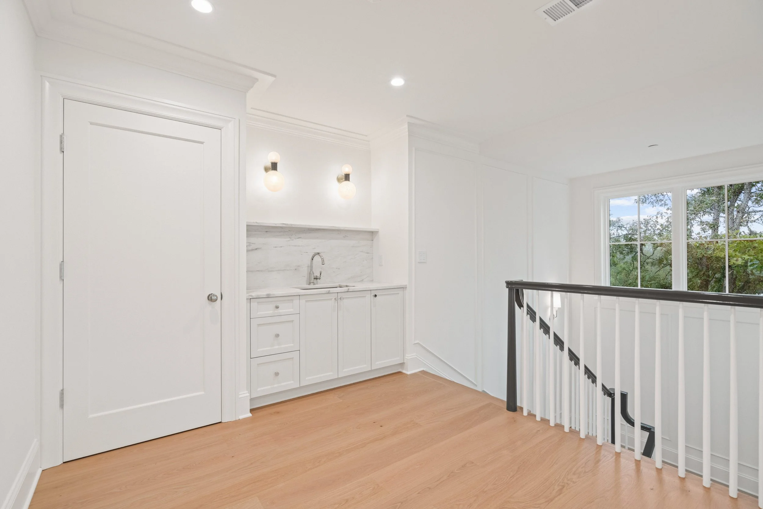 Upstairs features majestic views of the surrounding neighborhood and Rock Creek Park. In addition, the second level showcases four well-appointed bedrooms, each with walk-in closets and en-suite baths, as well as a versatile sitting room. The opulent primary suite with its 14.5-foot high vaulted ceiling is a sanctuary for peace and relaxation. The suite boasts dual walk-in closets and a spa-inspired bath complete with separate vanities, a soaking tub, a large walk-in shower, and a private water closet. The third level offers a flexible loft space with a wet bar and balcony to take in the views, plenty of storage space, plus an additional bedroom, and a full bathroom—ideal for guests, a teen suite, or additional recreational space.